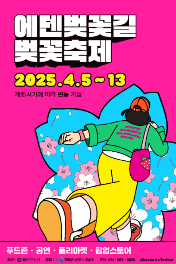 많은 분들이 봄이 되면 벚꽃축제를 가실텐데요. 가평에 위치한 에덴벚꽃길은 비교적 낮은 기온으로 국내에서 벚꽃이 가장 늦게 피는 지역에 위치해 있다고합니다.